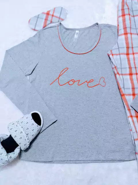 - Blusa em malha cinza mescla e calça em soft xadrez (super quentinha).